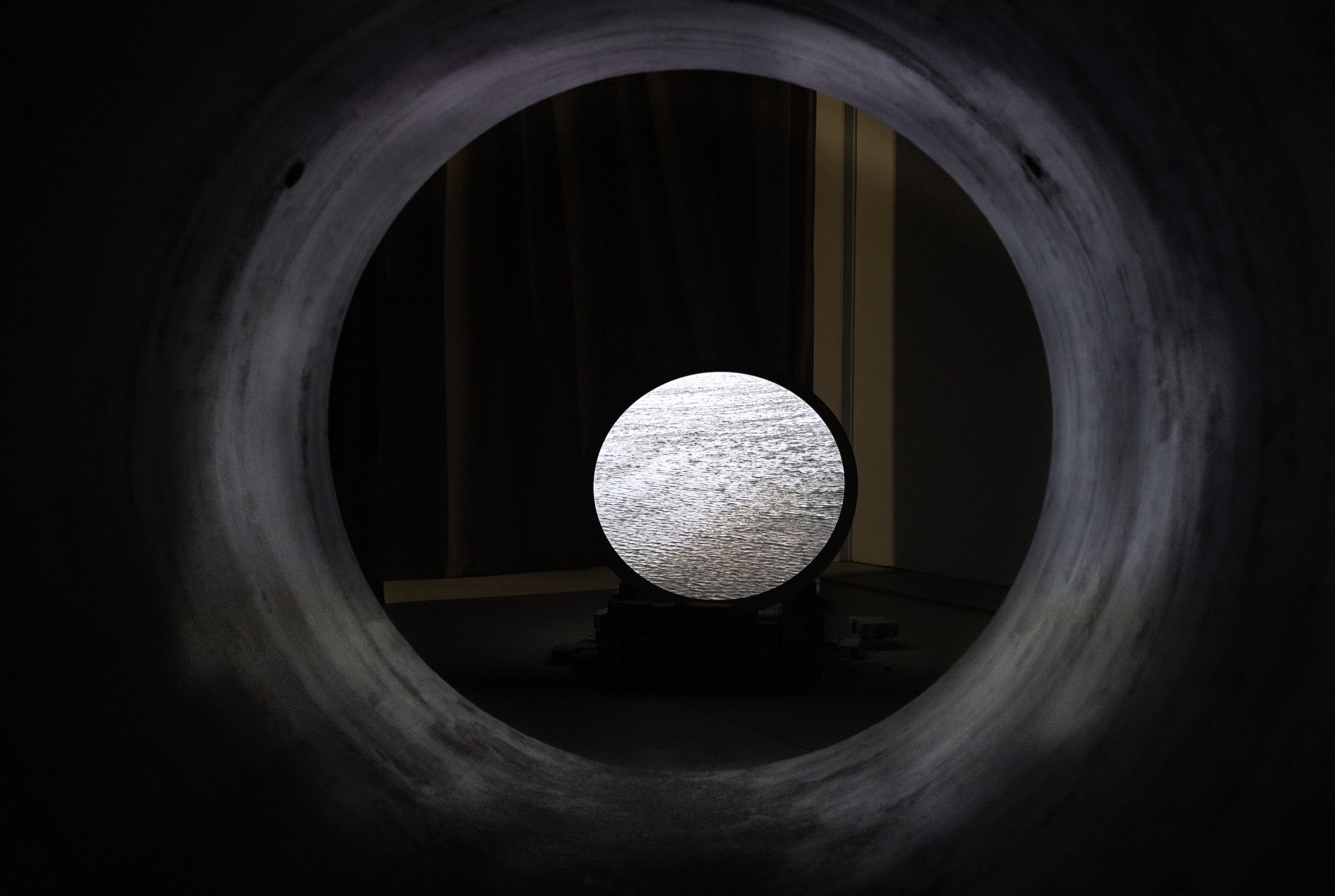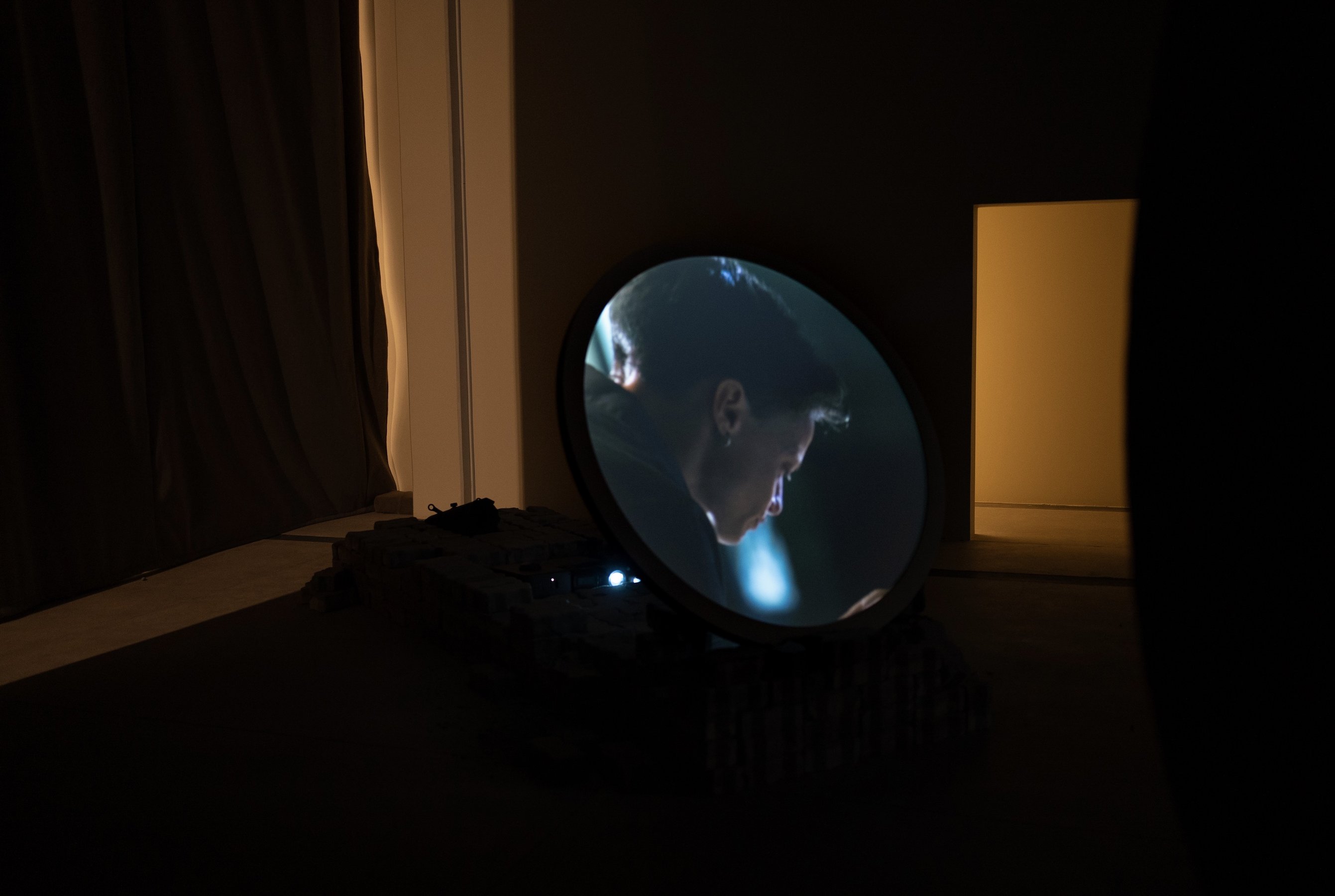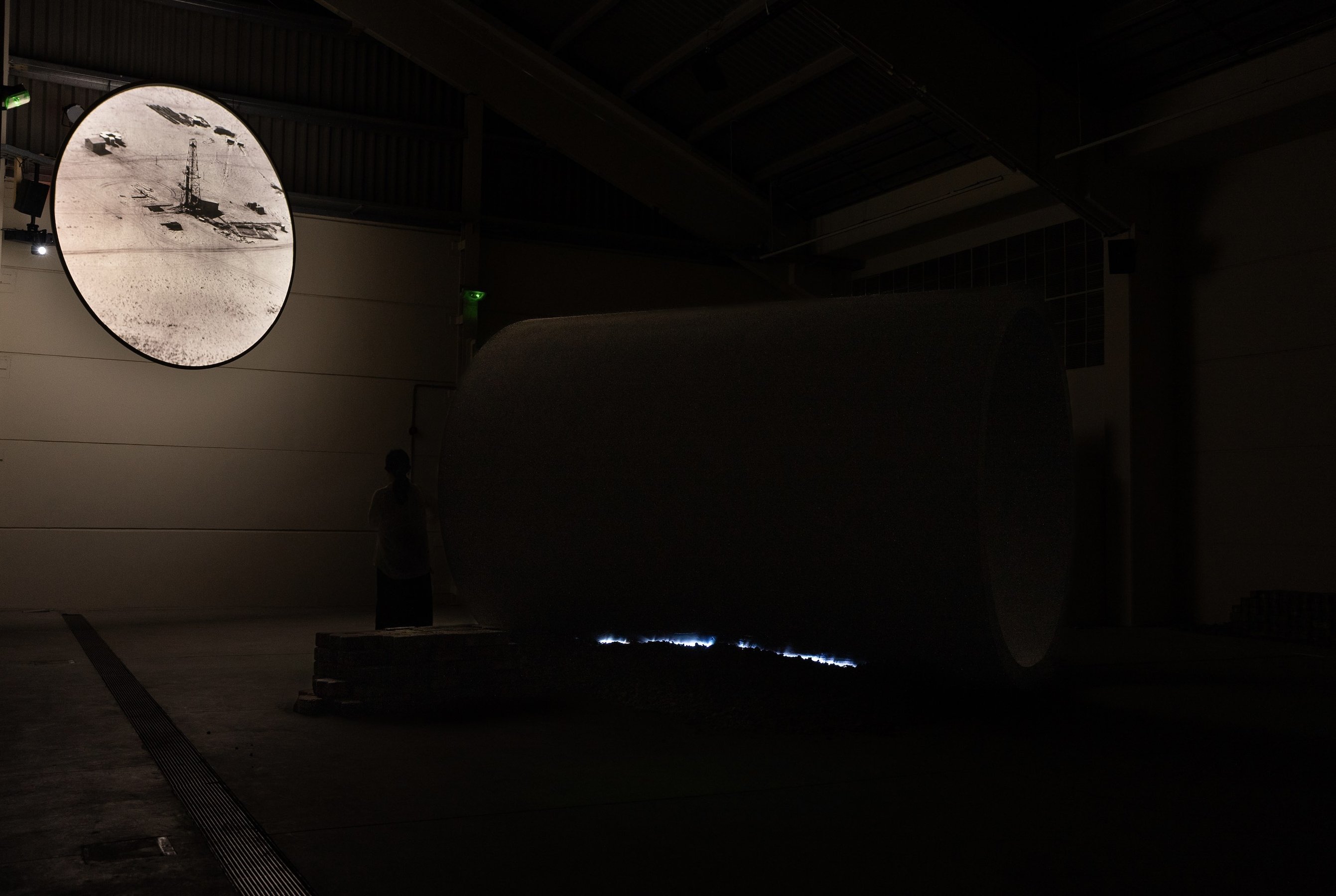 film installation, two-channel high-definition video, eighteen-channel audio, 45 min. Commissioned for Sharjah Biennial 16