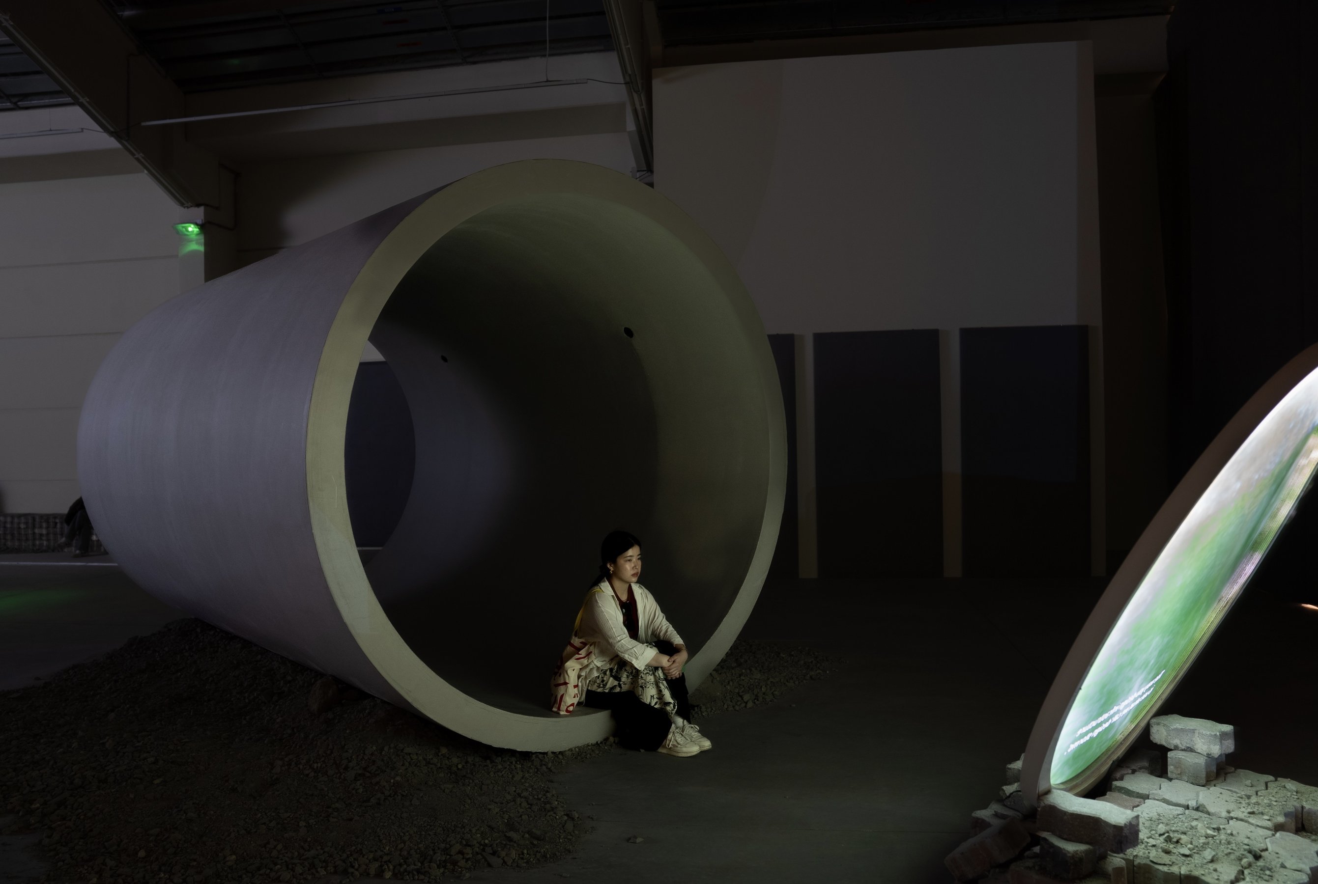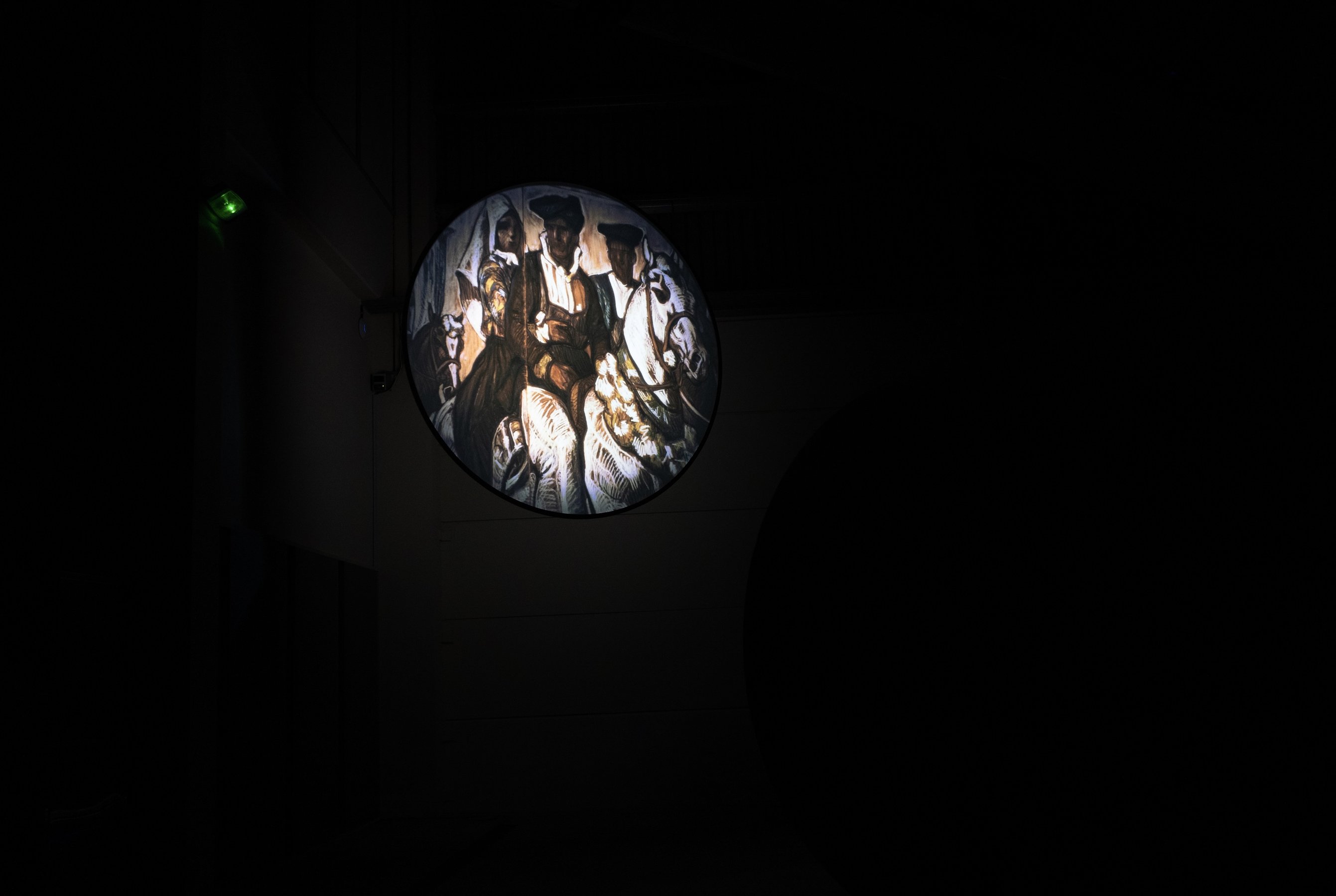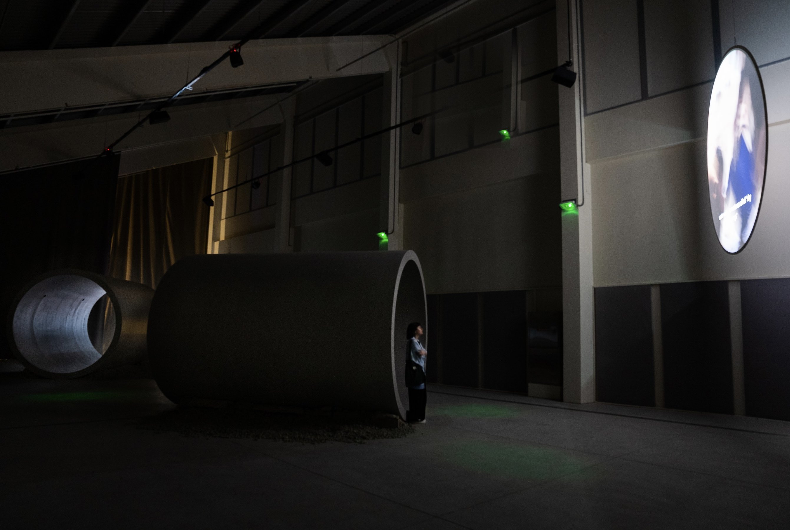 film installation, two-channel high-definition video, eighteen-channel audio, 45 min. Commissioned for Sharjah Biennial 16