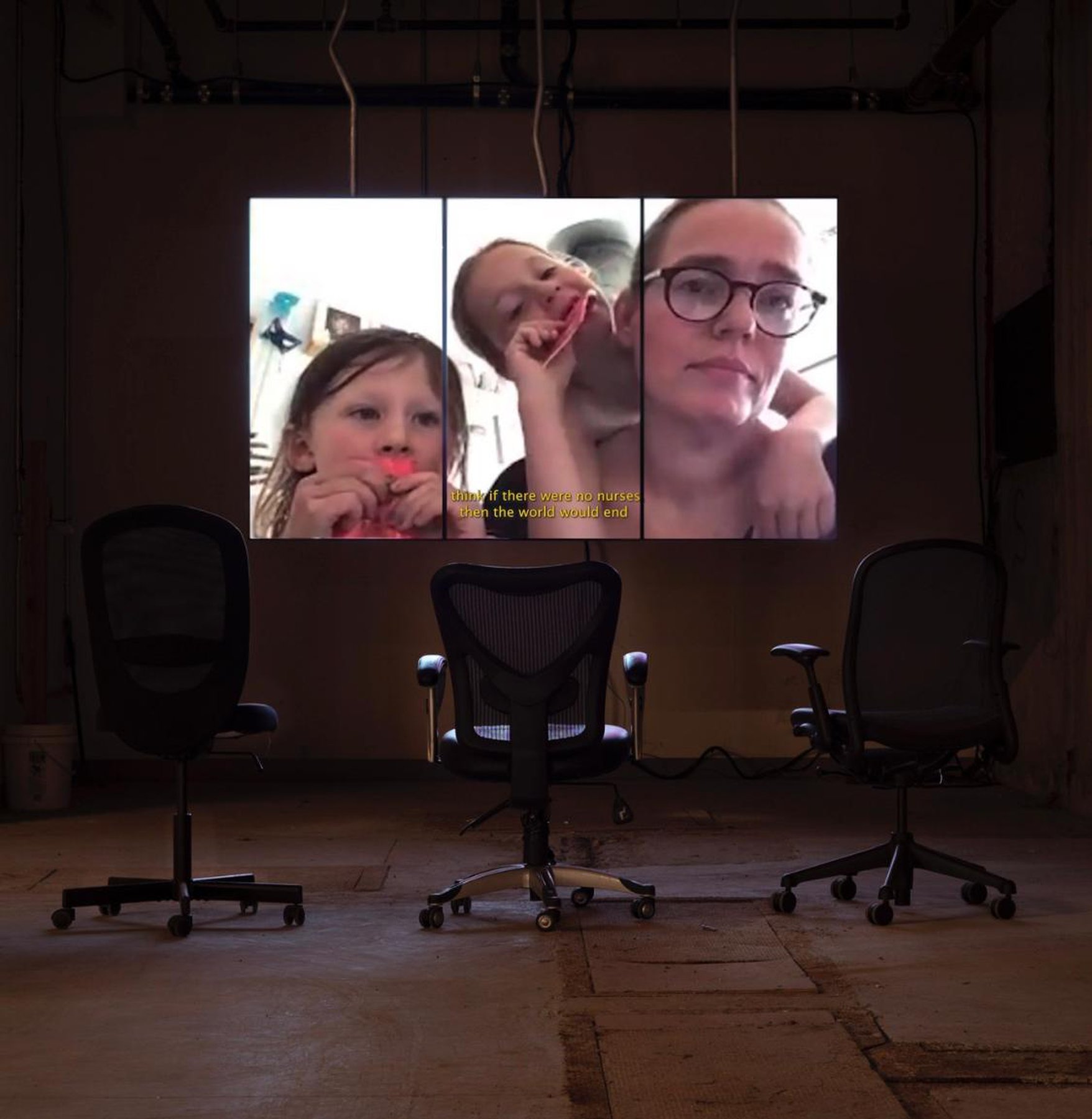 film installation, metal mesh, LED light, HD video, Zoom and mobile phone footage 3