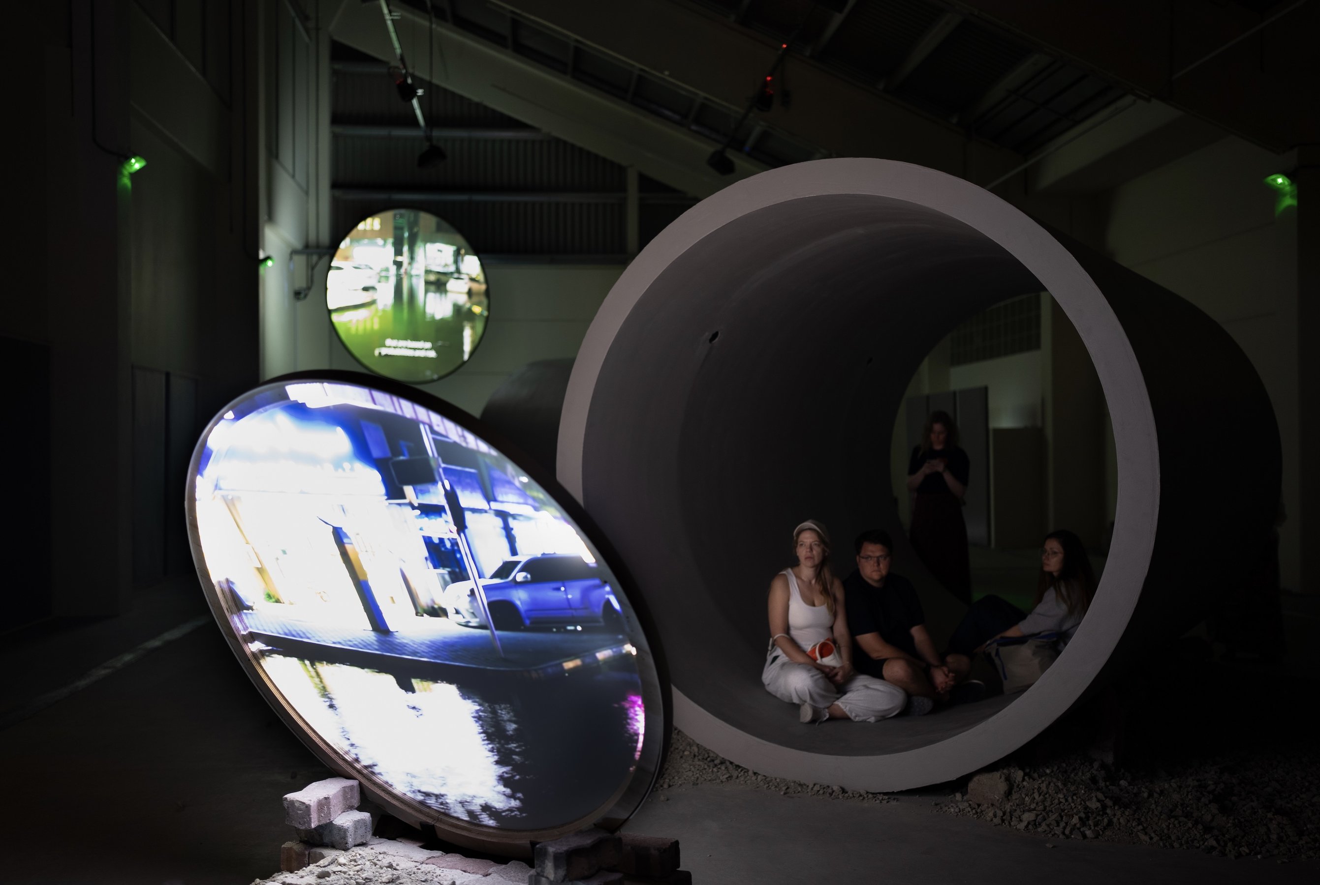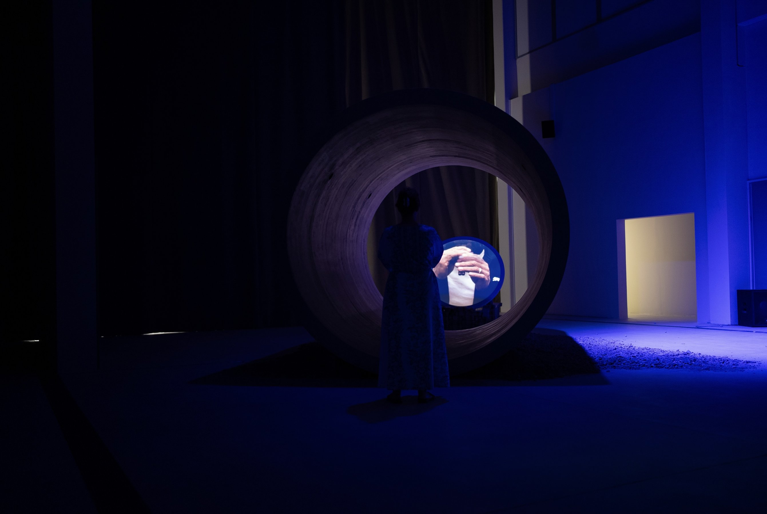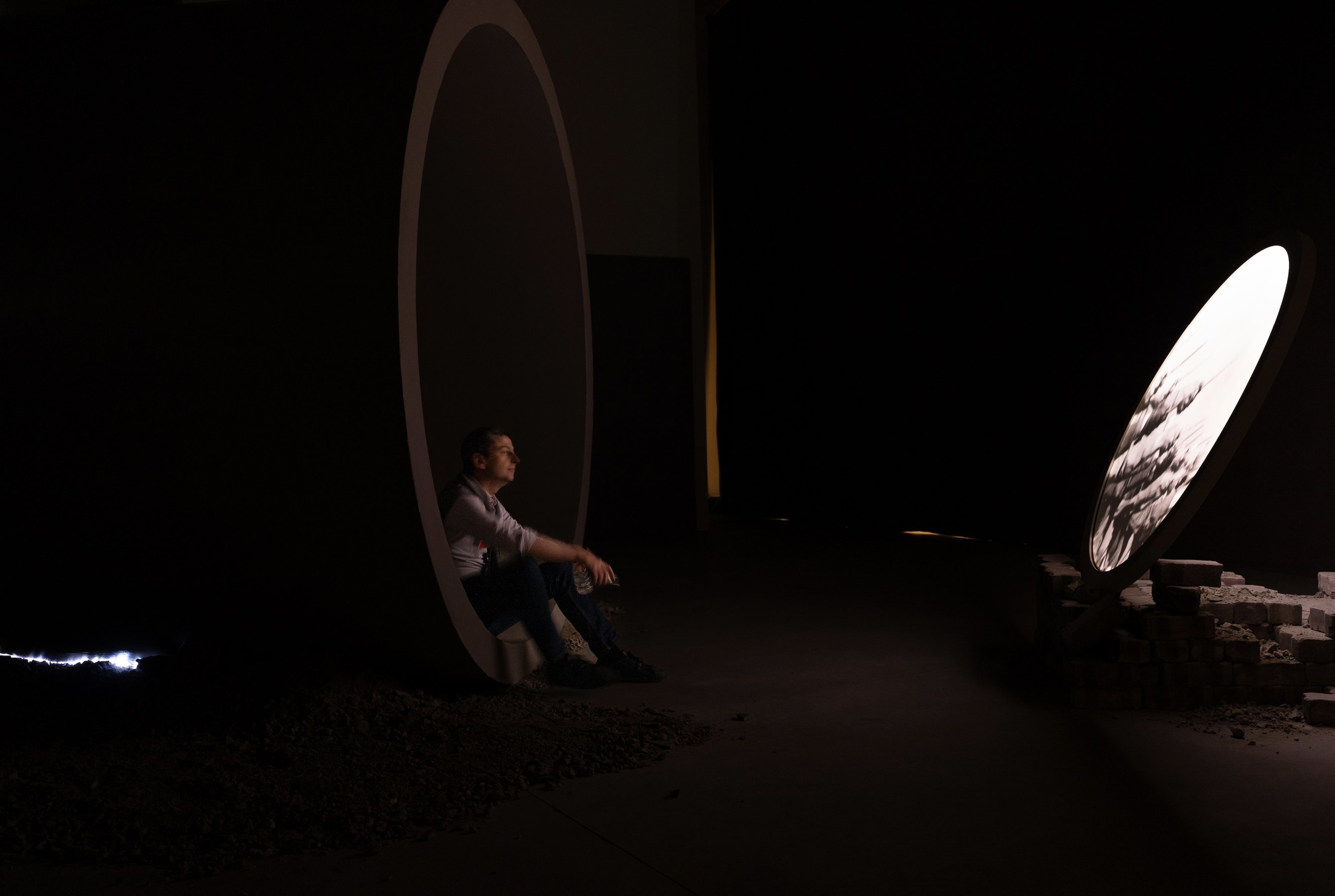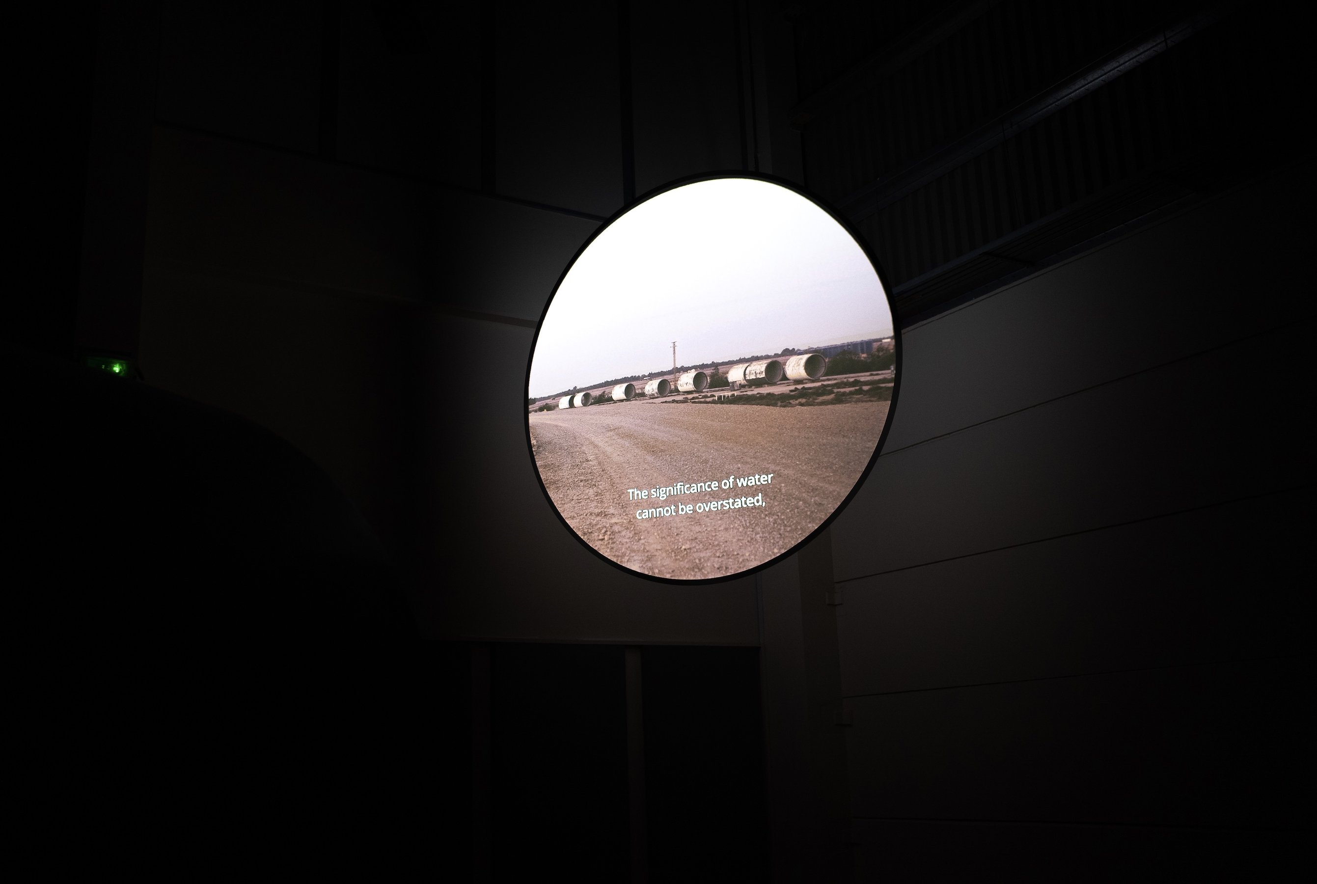 film installation, two-channel high-definition video, eighteen-channel audio, 45 min. Commissioned for Sharjah Biennial 16